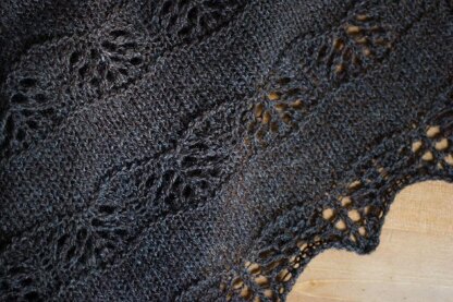 It is suggested to use a sport-weight yarn on size 9 US needles for a light, airy fabric, but it may also be worked in lace or fingering weight yarn on smaller needles, or conversely, sized up with heavier yarn. The only limit is your yardage! Please plan ahead accordingly.