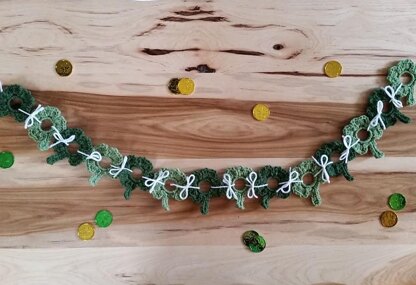 This Shamrock Garland is made by crocheting around 1" plastic rings found on most water bottles. It's an easy project that can be worked up quickly. You can customize the length of the garland to your own specifications.