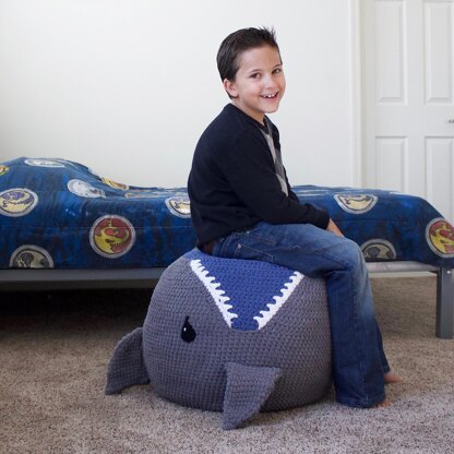 This shark pouf is perfect for all those shark lovers. Poufs are such a fun way to add dimension and texture to a room. This shark pouf makes for a great decoration piece in your kid's room, living room or play room. Put your feet up on it or use it for extra seating. Not only is it cute decor but the kids loved this as a photo prop! With these detailed instructions, even those with little crochet experience can find success creating their own masterpieces!