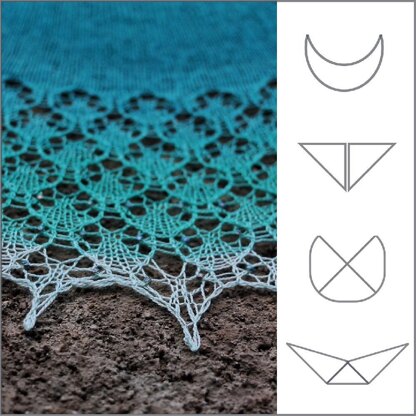 The pattern is a mini lesson in shawl shaping and includes all 4 patterns in one. These can be printed as a whole, or select only the pages relevant to the shape you're working on at the time.