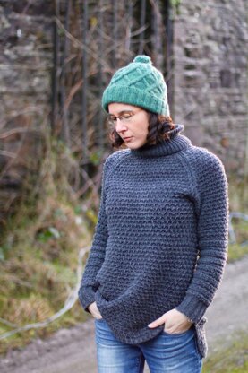 The soft tweedy flecks of the Donegal yarn are beautifully enhanced with the subtle hand-dyed colour. The soft lofty yarn just begs to be cabled, the cables look plump and full with this yarn. Worked in the round from the bottom up the sample shows a folded brim in the medium size.