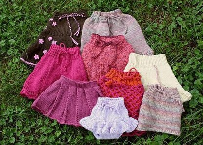 Made with wool, the skirt can function as a cloth diaper cover and clothing in one. Made from cotton, acrylic, or another fiber, it makes a cute machine washable skirt for any baby.