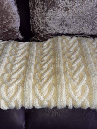 This stunning blanker=t has been name in memory of my Mammy. It is a beautiful blanket in 3 sizes to for Car Sear, Pram and Cot and also instructions for bobble hat to fit 0-3 months. Teamed with the Mammys Love Aran set it is a beautiful set as shown in pictures. It would also make a beautiful lap blanket.