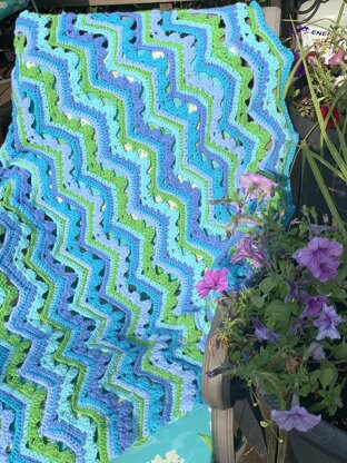 Basic crochet stitches are all you need to create this beauty. I chose to use 5 colors for the 6 row repeat, but will also look great in 4 colors or in a cake yarn.