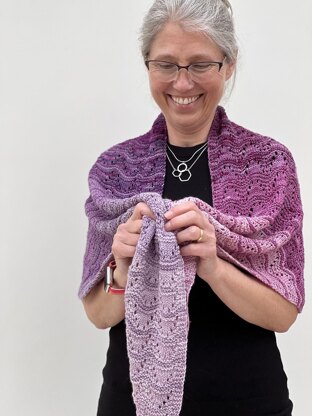 The Shawl is inspired by the layers of beautiful shells which are often revealed at low tide around West Wittering Beach on the South Coast of England. This shawl is designed especially for mini-skeins, using a narrow stripe within the pattern to blend shades into each other and to create a fade across the shawl. Depending on the selected shades and chosen order, this can be a strong contrast or very subtle!