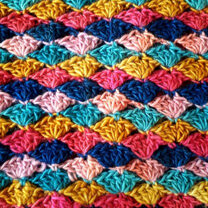 The cowl is made up of hdc and shell stitch. I used 5 mini skeins from Manos Del Uruguay but my testers used a combination of leftover scrap 4ply too.