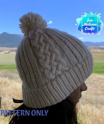 The Sheridan Cable Hat is designed with a provisional cast-on to create a double-thick brim for added warmth on your ears. There is also an option for a single-thick brim. The cable patterns add classy interest while an optional pom pom creates a fun feel.