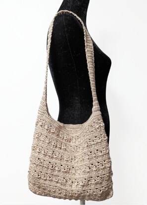 The Shiawassee Shoulder Bag is a pretty crochet tote bag that works up fairly quick. Designed for cotton yarn, as cotton won't stretch out. Gauge is more of a suggestion than a rule. With its rectangular shape, adding a lining is an easy option.