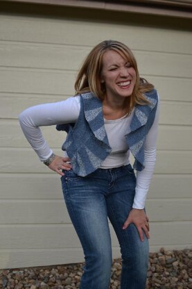 The body of the bolero is worked as one piece and seamed just a bit at the bust area of the front. Then the short row ruffle trim is joined to the piece as it is worked so it makes for very a nearly seamless project.