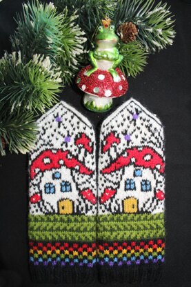 Shroomy pattern includes charts and instructions for both full mittens and a fingerless version.
