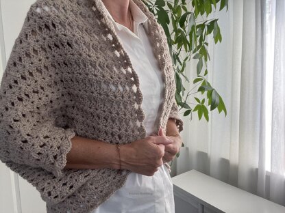 I made this shrug to wear it this fall, I think its a lovely design - you can also use it to cover a dress.