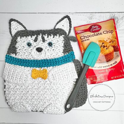 The crochet Siberian Husky Pot Holder is the perfect gift for dog lovers! This crochet pot holder has a pocket on the front for adding little gifts like cookie mix, spatulas, and recipe cards.