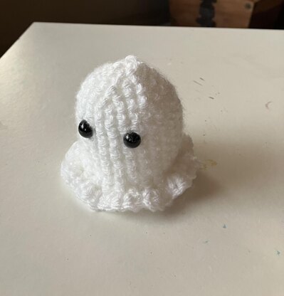 A simple and cute amigurumi ghost that is the perfect decoration for Halloween.