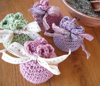 This is a simple crochet sachet which can be made very quickly and is a great stash buster. You need a small quantity of dk yarn, a 3,5mm crochet hook, some lining material, pot pourri and a small length of ribbon. It is made in one piece with very little finishing off required. Very easy to make and a sweet little present. This pattern is now written in English and US crochet terms.