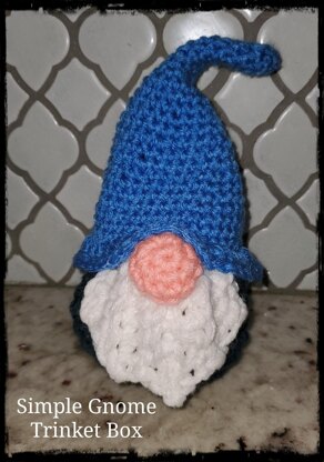 Cute little Gnome trinket basket. Cute for gift giving or just to put on a counter to collect small treasures. Pattern makes up quickly and is very easy.