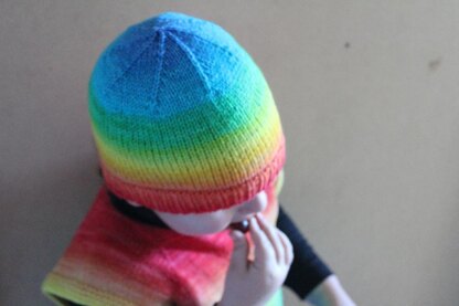 The beanie works well without the roll brim too. Simply halve the brim length to omit the roll. The roll does have a firmer fit so if omitting the roll, you may wish to use 3.25 needles for the brim section.