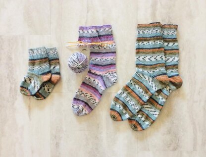 I have included an extensive size range, from Toddler to Adult Men, to make sure that you can knit socks for anyone and everyone in your family. Friends? Neighbors? The world? ... And why not? With this method you can make a pair in just 2 days!