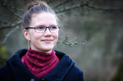 This cowl is made to hug your neck in cascades of warm, soft fabric. The increases and decreases along with the alternate sections of stockinette and reverse stokinette create its worm like appearance. The twist section provides not only a focal point, but makes the cowl stand up nicely.
