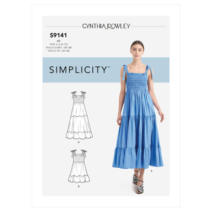 Simplicity Sewing Pattern SS9141D5 (4-6-8-10-12) women,dresses, Misses' dress with shirred bodices & shoulder ties in mid-calf & mini lengths
