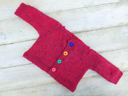 This is an easy flat knit pattern, worked in one piece, from base of back to base of front.I called the cardigan pattern Simply Splendid, because although it has minimal shaping and it quick and easy to knit, it fits very well and looks great on.Pattern comes in 4 sizes: 0-6 months, 6-12 months, 1-2 years, 2-3 yearsKnit from back to front in one piece, with classic straight lines, no increases or decreases, just some casting on and off.Also, only one seam on each side and underarm to sew up.Materials:• DK or Worsted Weight (8ply)Yarn: approx. 2, 2, 3, 3, 50 g Balls• Knitting Needles: Size 4mm or US6• Stitch Markers• Stitch Holders• Darning needle•4, 4,(5,5) buttons, 1/2 in. (12 mm) diameter