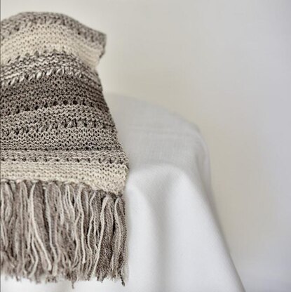 Want to do some colorwork, but haven’t mastered those advanced skills yet? Then here’s the project for you! Worked with simple stitches and a fun-but-easy color blending technique, this scarf turns three natural shades of grey into a six color accessory. With a splash of eyelets and a light finishing fringe, this is the ideal beginner’s knit!