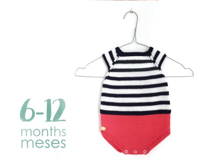 This knitted romper pattern is one of those basic patterns that can be used to make a Sailor Baby Romper, combine different colors, add ruffles, use the yoke to make a top for a dress or only the bottom to make a diaper cover, the possibilities are endless!