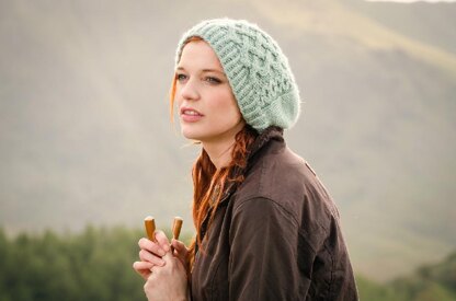 A slouchy hat with a broad cable panel, Skáidi is the perfect cozy chapeau for winter. Honeycomb cables along each side of the main panel are balanced by a third honeycomb cable on the far side. Worked in a luxurious chunky yarn, this is a great project for holiday gifts.