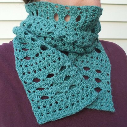 This is a lacy Tunisian scarf which works up beautifully in any soft, sport or DK weight yarn. Natural fibers such as alpaca and wool work well but you can also use acrylic blends.