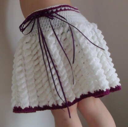 Curly Girly Skirt makes use of an unusual stitch to give an almost corkscrew effect to the body of the skirt.