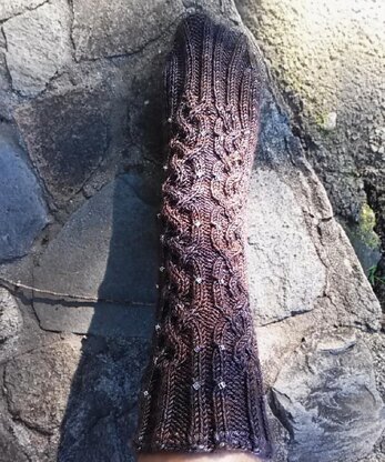 Available in two yarn weight options and optional beads, the possibilities are endless with this sock. Knit it up in Sport or Light DK yarn for a cozy “boot” sock ready for forest adventures or the chill of winter floors. Knit it up in a delicate fingering with a glimmering of beads and you have a sock any sophisticated sock lover would adore. Or make it without beads for the special Icabod Crane in your life.