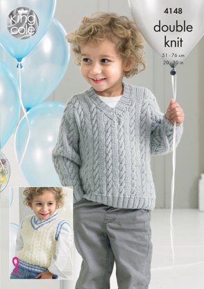 Slipover and Sweaters in King Cole Comfort DK - 4148 - Downloadable PDF est un modèle de Tricot Intermédiaire par King Cole, disponible au format PDF téléchargeable et comprend des instructions en Anglais. Super amusant à réaliser, ce modèle pourrait être votre prochaine œuvre d'art !
