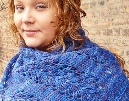 The Slippery Vine Wrap is so named because the pattern incorporates both vine lace and a lovely textured slip stitch border.