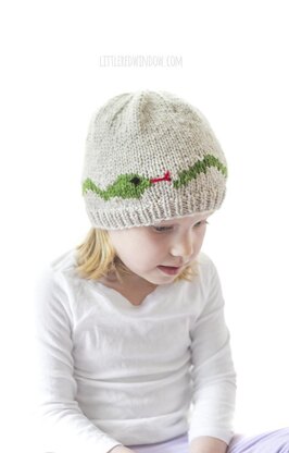 If you have a reptile enthusiast, they'll love this adorable slithery snake hat knitting pattern! This one comes in sizes from newborn or toddler and includes charts and instructions to knit this cute hat with a snake around the middle. This easy baby hat knitting pattern is knit in the round with worsted weight yarn and does require basic knowledge of stranded / fair isle knitting techniques.