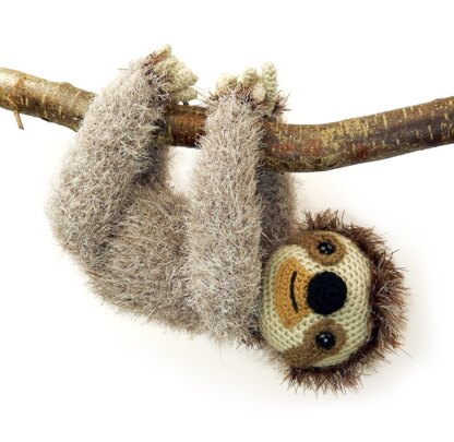 Sloth measures 13" (33cm) tall when made with light worsted weight (DK/8 ply) 'King Cole - Moments' eyelash type yarn and a size D (3.25mm) Hook. Mohair yarns work well too.