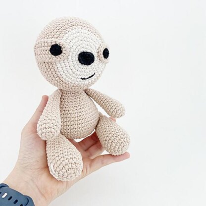 The sloth measures approximately 15 cm in a seated position when using the materials mentioned above. If you are using yarn with a different gauge the toy’s measurements will change. Feel free to use any yarn you want, the toy itself won’t change, just the size. Make sure you sew tightly every part of the toy.