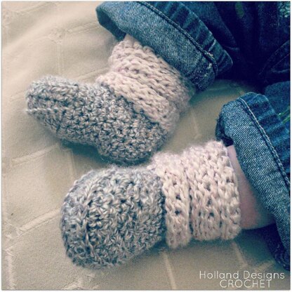 These little boots have a great snug, stay-on fit. Design features a knit-look ribbed cuff to create a great slouchy look.
