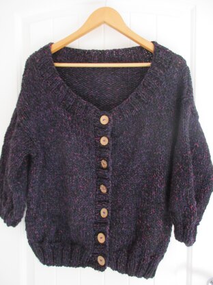 This is a pattern for a slouchy cardigan, originally published in Knitting magazine. It is an easy to knit, easy to wear casual cardigan with large buttons.