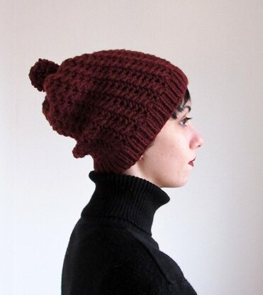 Slouchy Noah is a textured hat worked in the round from the bottom up. Incredibly quick, easy yet effective, perfect for last minute gift.