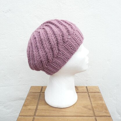 This is a quick and easy pattern to knit a slouchy tam which can easily be made even more slouchy with an extra pattern repeat. The lace pattern which spirals round the hat is easy to follow and the hat is knitted flat and then seamed up the side, making it ideal for novice knitters too.