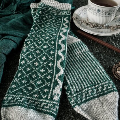 You can use any fingering weight yarns of any 2 contrasting colours but green and grey are the colours for Slytherin.