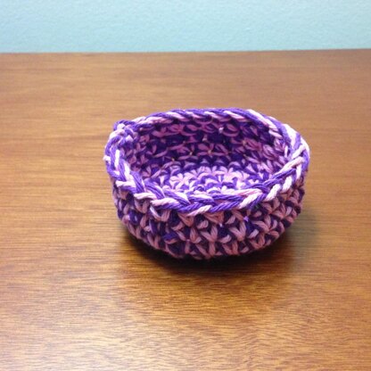 Size: The bowl measures 3 ½ inches in diameter and is 1 ¾ inches tall. It can be made taller by working more rounds of the pattern.