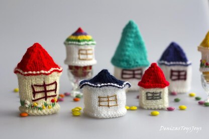 Small Houses for keeping warm Easter eggs - pdf knitting patterns.