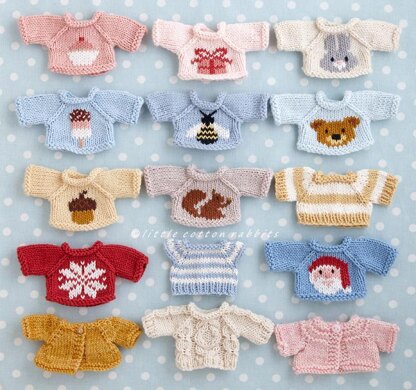 These patterns are designed to fit my 7 inch 'Small Rabbit' pattern ( not the regular 9 inch sized animals) or a doll of around 7 inches tall.