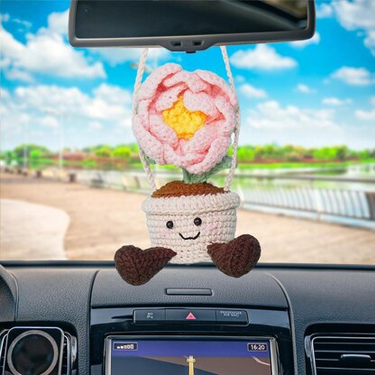 Smiling Peony Basket Car Hanging