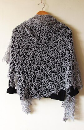 Smoke On The Water is a triangular shawl worked top-down. Pattern both written and charted.