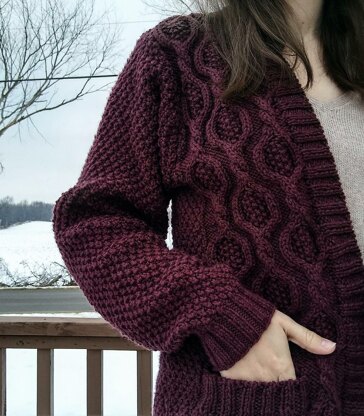 This beautiful cardigan is fun to knit and incredibly cozy! It is the perfect cardigan for those extra chilly days when you just want to be wrapped in warmth.