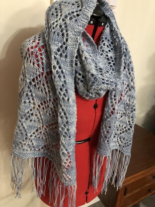 This scarf can be dressed up or dressed down. I have given the option of adding a fringe to the ends of the scarf. I added a small fringe to use up the yarn I had left after finishing the scarf. The width of this scarf is great for wrapping up around your face on a cold day and giving great texture when you are out and about.