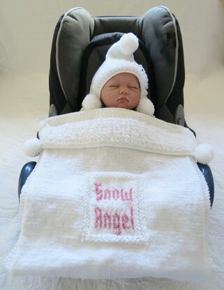 Snow Angel - A Hooded 0-3 month car seat blanket. A unique design for a very special baby and a perfect baby shower gift that will delight any new mother-to-be. The blanket will keep the baby snug with the added benefit that it stays in place and does not slip or ride up as its secured by the straps without interference.