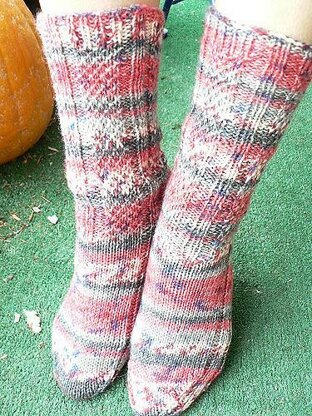 Easy slipped stitches and moss stitch. Great pattern for beginning sock knitter!