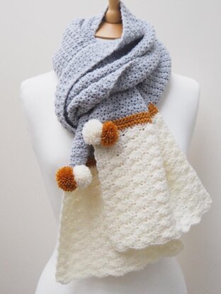 The Snow Dipped Scarf is warm and snuggly and can be made in your 3 favourite colours. I've used Stylecraft Special dk in silver, gold and cream for a soft winter look. There is also the Snow Dipped Mitts pattern that can be purchased that matches perfectly and the set can be made with the yarn quantity stated for the scarf (if using the stated yarn - 5 balls in total) Make it in colours to match your favourite coat and have fun with the pom-poms too! I hope you enjoy making and either wearing or gifting your Snow Dipped Scarf x